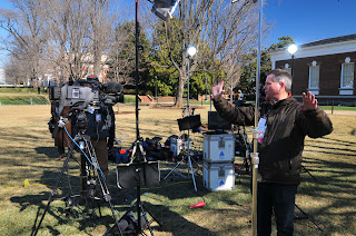 Our Remote Productions department provided three cameras, mics, and lighting for a 2-person interview. The DCI HD1 satellite truck uplinked all 3 paths to allow the show director to choose the cameras, and also downlinked a network return, all of which went through the DCI Teleport back in Washington. Using multiplexer and DVB-S2 technology, DCI was able to use roughly half the bandwidth as a typical DVB-S satellite truck with single channel carriers, and still deliver a higher-quality video signal. Since this client does not own full-time satellite space leases, using half the bandwidth resulted in a visible cost savings. As highly experienced satellite engineers, we are able to suggest new ways of doing transmissions to save our clients money.